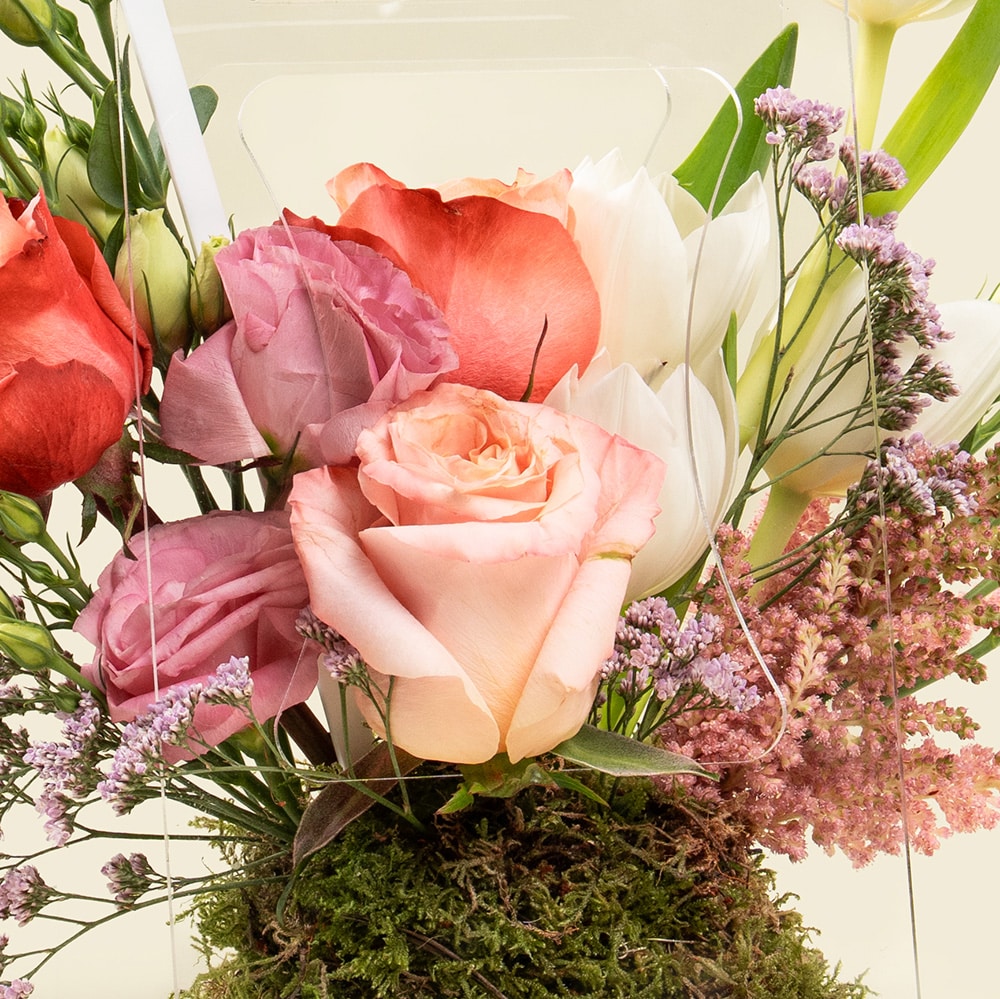 Show gratitude this Teacher’s Day with our elegant White Tulips, Astilbe & Orange Roses Arrangement in an Acrylic Handbag.